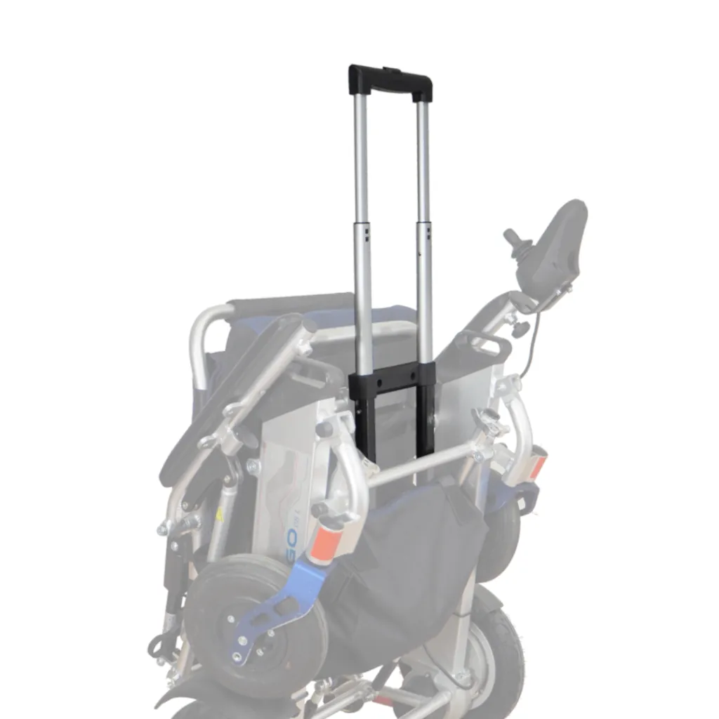 Il carrello ti permette di portare la sedia a rotelle Ergo 08 come valigia antivento. La sua maniglia telescopica, nascosta sotto la poltrona, si dispiega in un gesto e trasforma la sedia in un carrello facile da spostare.